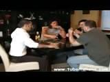 Milf erwischt ihren Stiefsohn beim Sex mit seinem Kumpel und macht mit